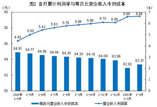 1—3月份,范围以上工业企业每一百元业务收入中的成本为83.37元,同比削减1.36元;每一百元业务收入中的用度为8.60元,同比削减1.04元。